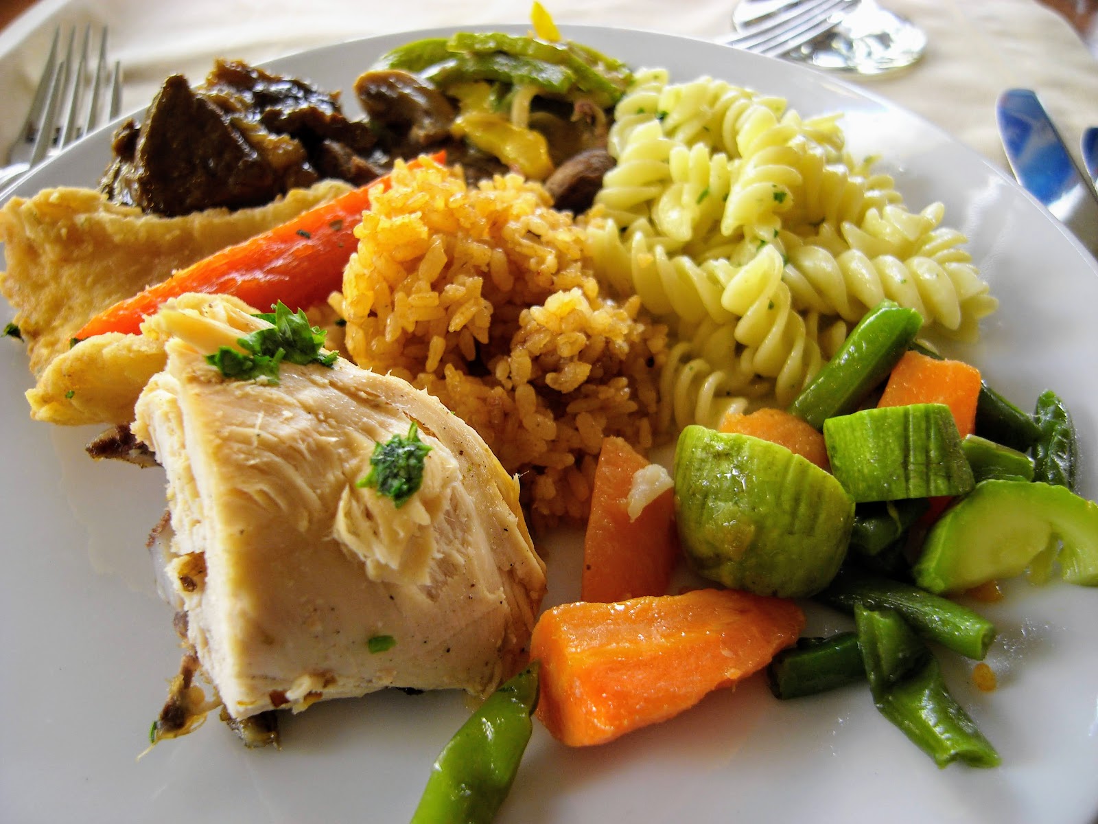 睡到中午在餐廳吃buffet,這是我拿的第一盤菜,領隊臨時取得消息,宣布可能有專機來接大家回台灣,但機位仍無法確定,15分鐘後在大廳集合,先趕到機場再說.