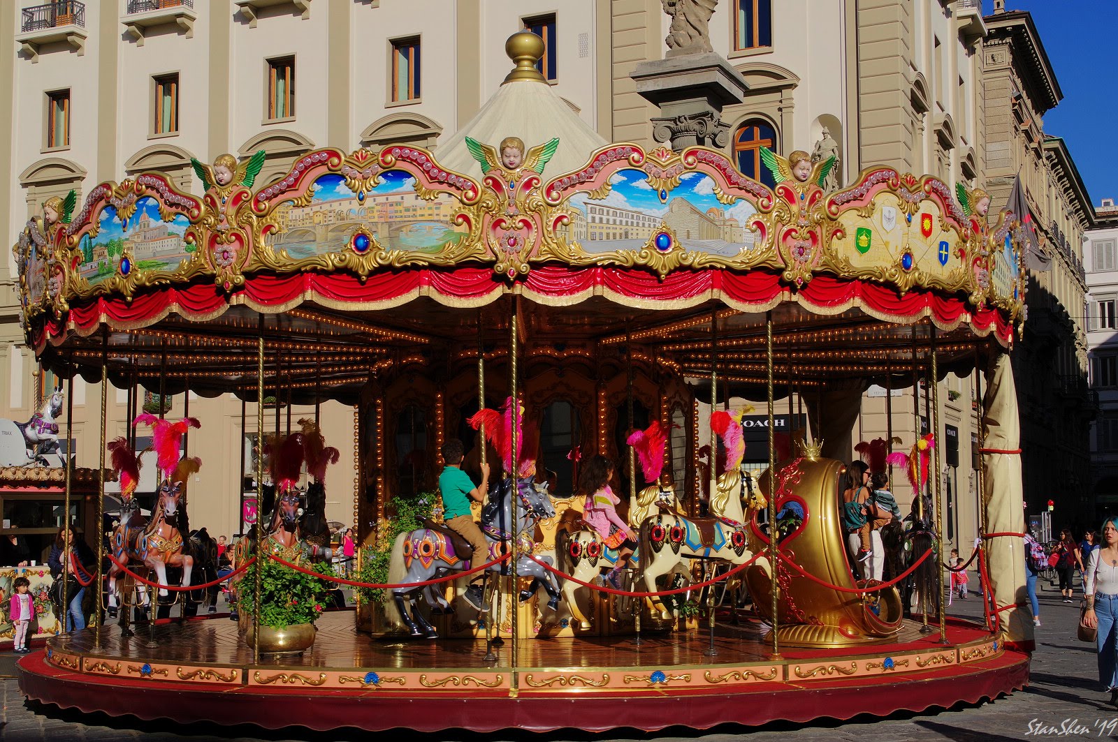 穿過「共和廣場」(Piazza della Repubblica)外圍的拱門長廊,這兒匯集佛羅倫斯的時尚名店與購物商場。
